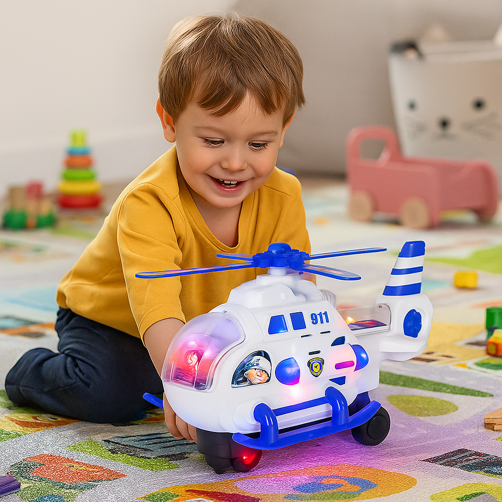 The exciting flashing lights and loud music aren’t just for fun – they help develop your child’s imagination and sensory perception. As the helicopter spins and lights up, your child will be immersed in a world of colors, sounds, and creative play. It’s the perfect toy to spark their curiosity and keep them entertained while developing essential skills that will benefit them for years to come.