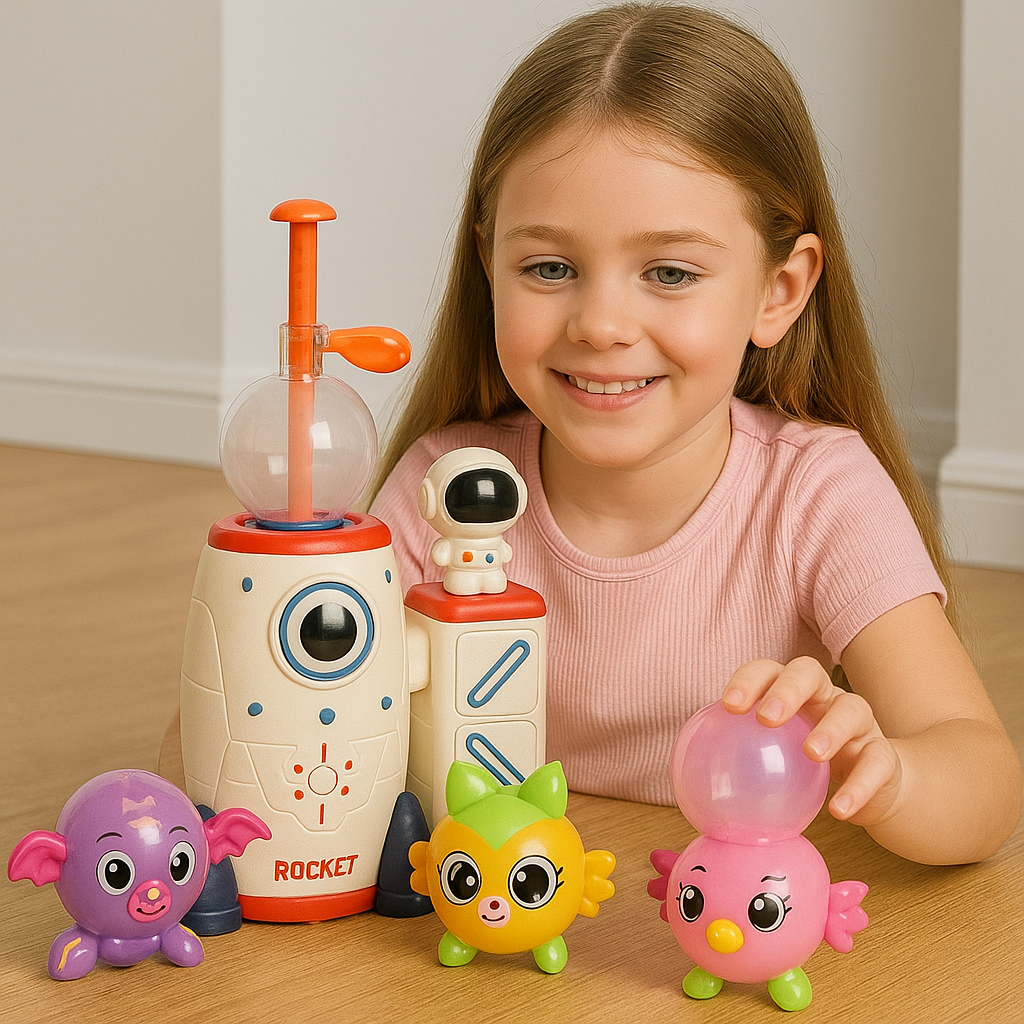 My grandson is 4 and he absolutely adores this toy. He thinks he’s sending animals to space each time he uses the rocket launcher. I recommend this to any parent who wants quiet, creative time.