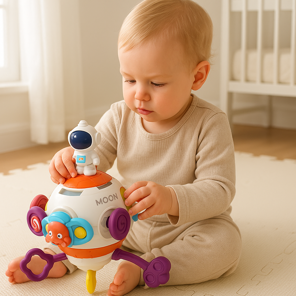 Explore a world of excitement with Astrolux – The Baby’s Space Adventure Toy; this enchanting combination of play and learning promotes important developmental abilities through fun activities, all within a secure, portable design that's ideal for little adventurers on the move!