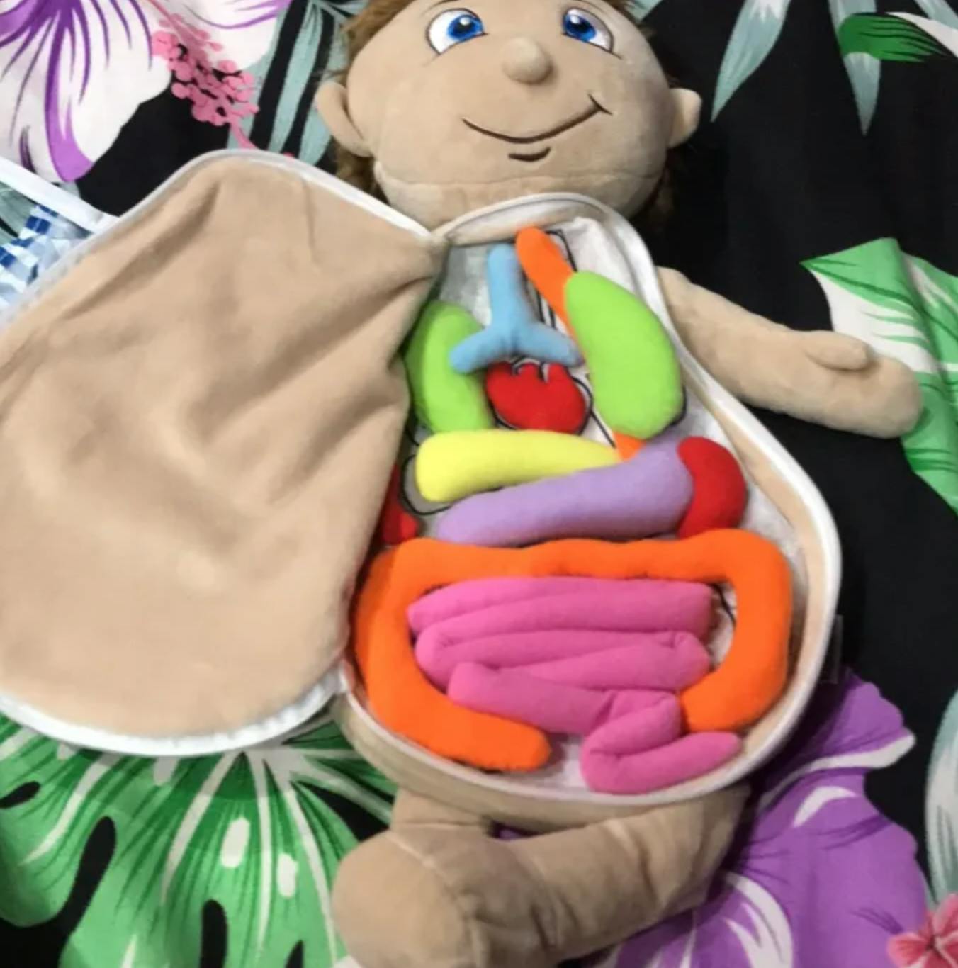my son is obsessed with organs now, thanks to this weird lil doll 😂. he learned “esophagus” and “intestines” in one afternoon. just be prepared to answer LOTS of body questions after haha