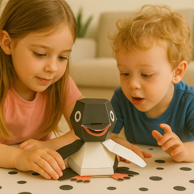 Utilizing perforated sheets and straightforward visual guides, kids get to create their own moving penguin incrementally. Each fold fosters concentration and perseverance, culminating in a reveal that instills a sense of pride in their handmade creation. It evolves into a small undertaking they can display, repeat, and eagerly share multiple times.