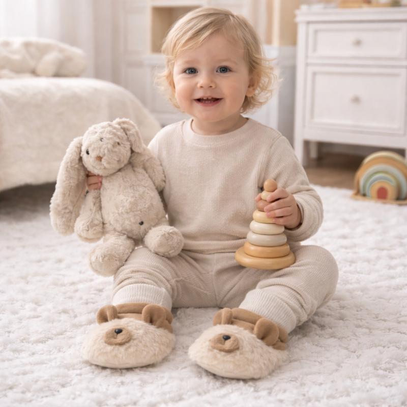 Bubblie cater to infants who are starting to crawl, stand, and explore. The sock-like design embraces little feet softly while promoting natural movement and flexibility. A gentle fleece upper keeps feet warm and comfortable, making them perfect for indoor play and chillier days.