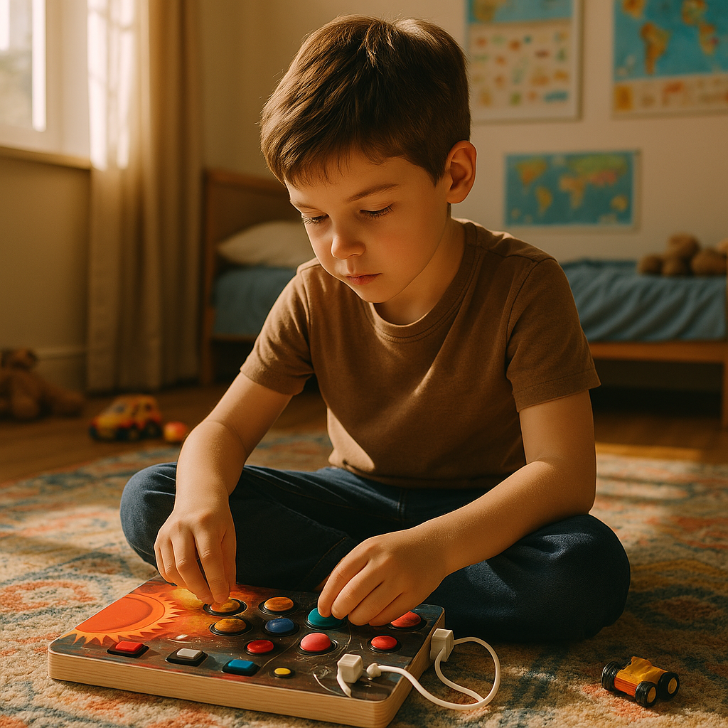 Education should always be enjoyable. The Celestia seamlessly integrates play and learning in a way that's instinctual. Your child discovers colors, patterns, and cause-and-effect simply by pressing buttons and toggling switches. Their curiosity is sparked. Their engagement is maintained. And most importantly—they remain unaware of how much knowledge they are gaining.