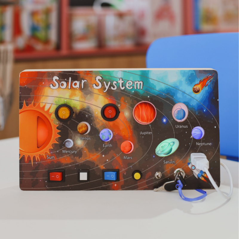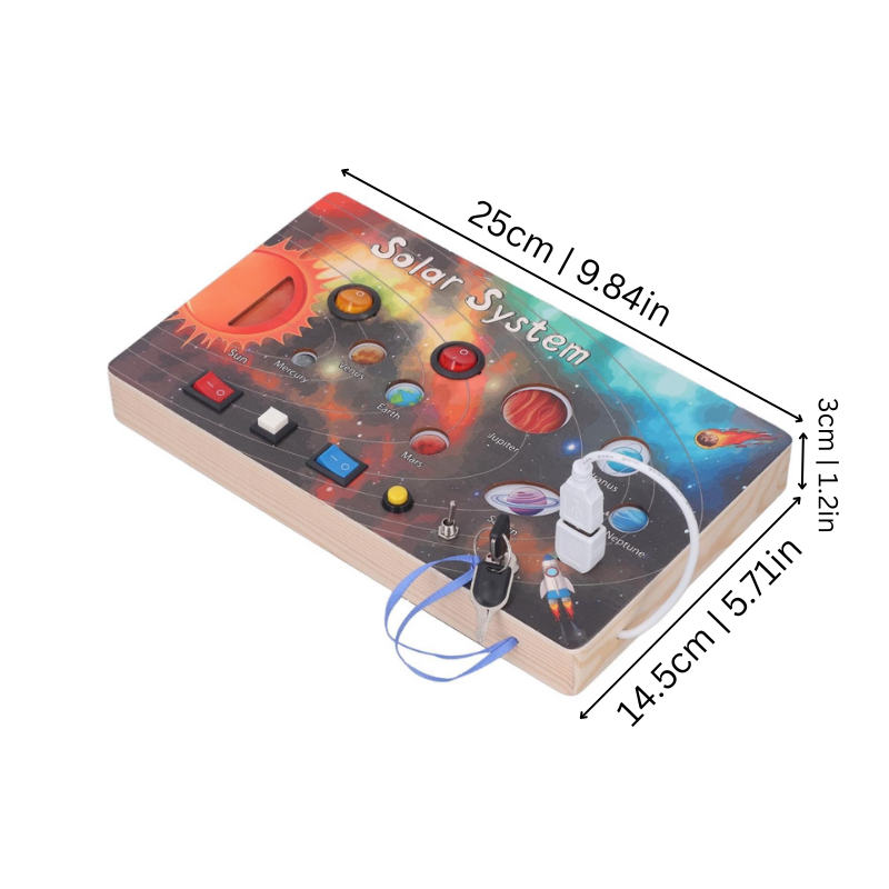 Ignite your child's creativity and wonder as they explore the cosmos with the Celestia, an interactive Montessori learning board that turns early education into a realm of sensory exploration, enjoyable skill-building, and vibrant light-up experiences they'll be eager to engage with.