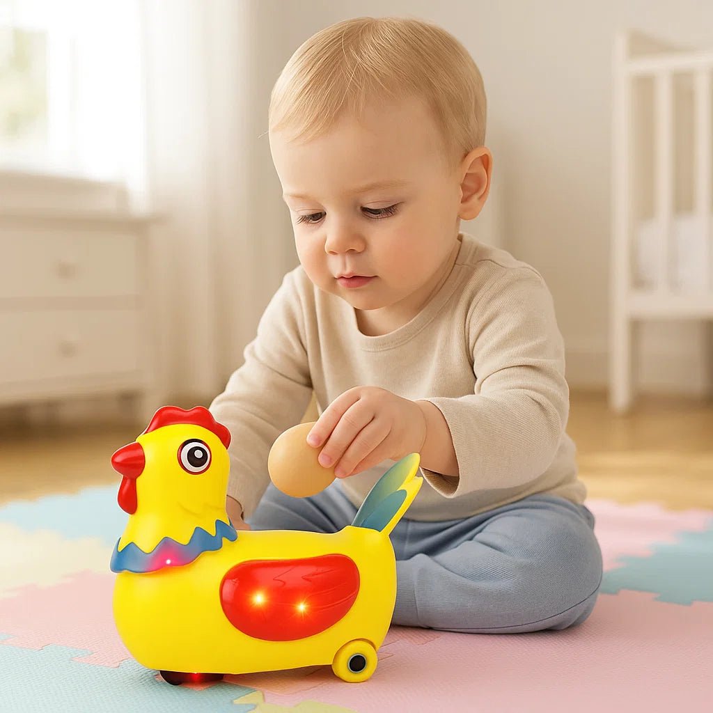 Brighten your child's day with Chickify, a charming singing chicken that enchants their imagination with cheerful tunes and vibrant colors while also aiding in the development of vital hand-eye coordination, making playtime enjoyable and educational.