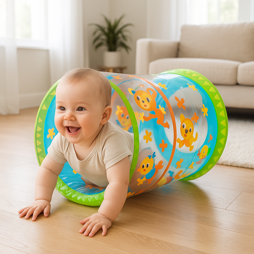 Help your child explore a delightful world of active play and healthy development with Crawla, the engaging crawling trainer that enchants their senses with lively sounds and fluid rolling movement while supporting their physical growth, assisting them in gaining strength and self-assurance as they start their crawling adventure.
