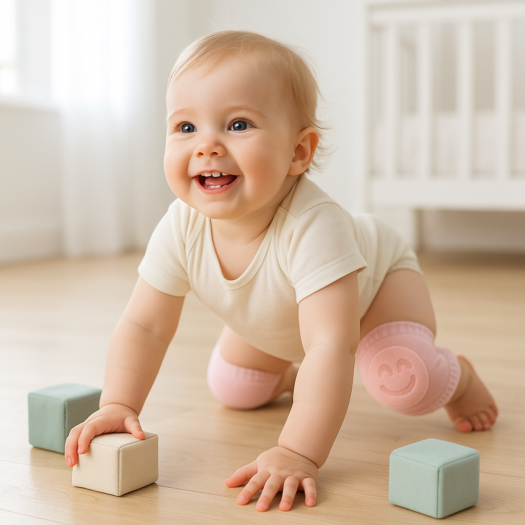 Each set features non-slip grips that minimize the risk of slips without hindering movement. They remain securely in place, even on the most active crawlers, and comfortably extend as your child matures. Whether they're chasing after toys or starting to stand, these pads adapt to their every move.