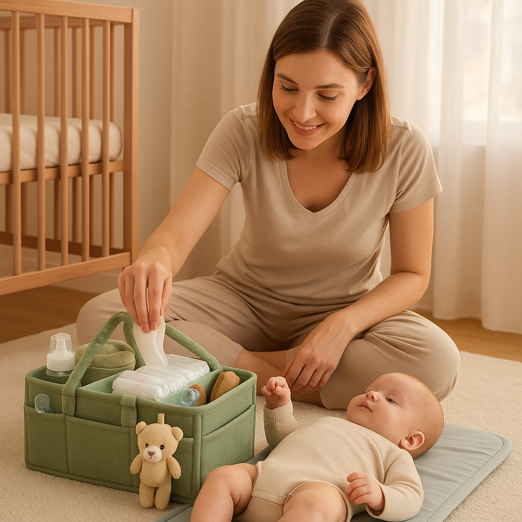 Let’s face it—having a baby can turn chaotic very quickly. This adorable caddy brings a sense of tranquility to the daily chaos. It keeps everything in one snug location, so you won't be rushing to find a diaper or wipe anymore.