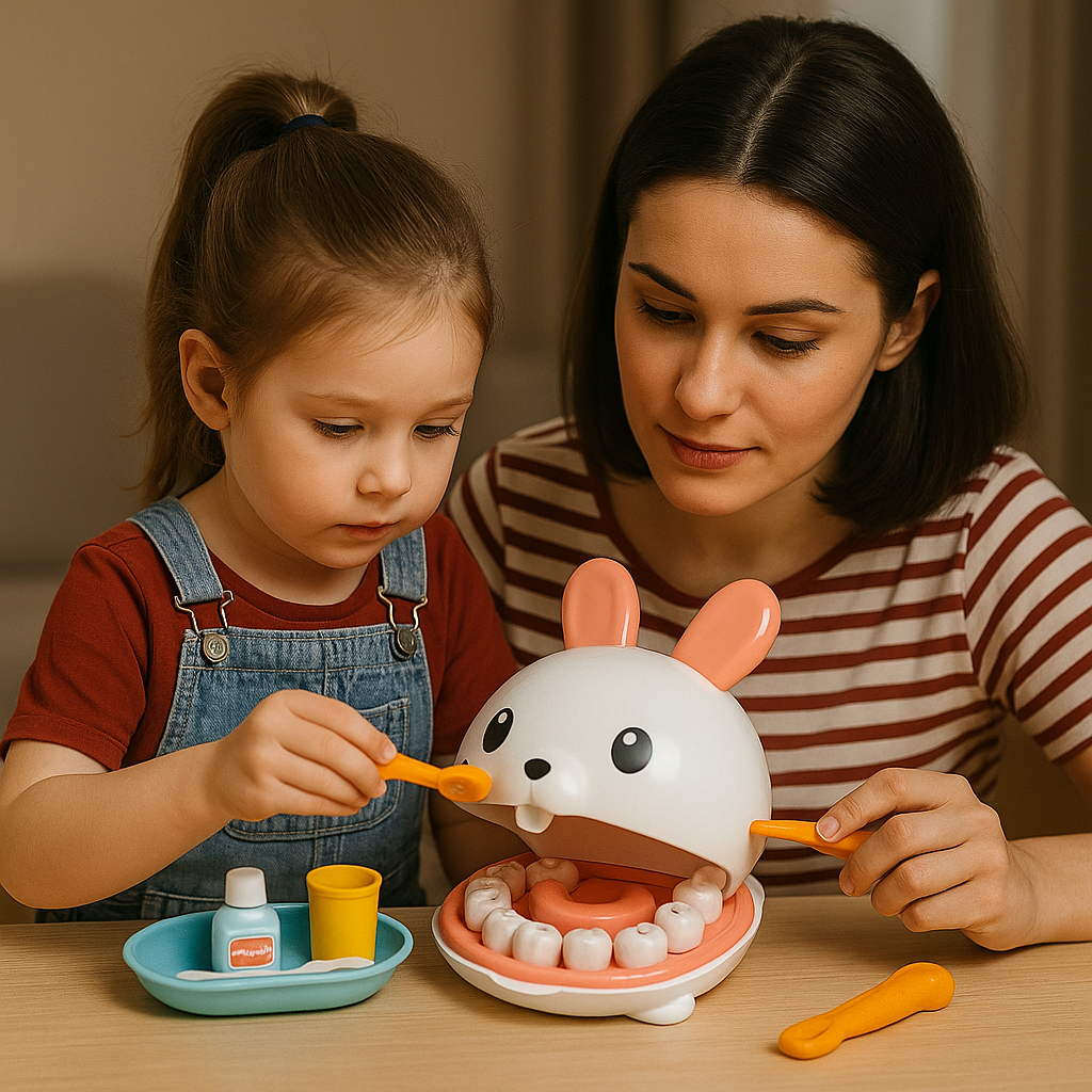 Kids thrive when engaging in play! This charming rabbit-themed dentist set transforms pretend play into genuine exploration. Your little one can act as a dentist, examine their toys’ teeth, or even 'repair' mom and dad’s grins. It’s an excellent method to enhance creativity while instilling positive habits at the same time.