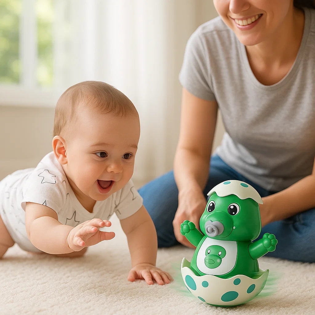Ignite hours of laughter and enriching playtime with DinoBounce—an energetic little dinosaur that sways, plays music, and navigates obstacles as it adds joy, movement, and wonder to your baby's daily floor activities.