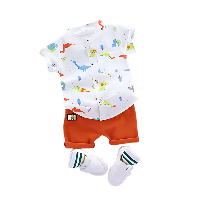 Keep your young Questiva comfortable, cool, and adorably stylish with the Dino Summer Set, a light and airy two-piece ensemble that showcases a whimsical cartoon dinosaur design, complete with a trendy stand-collar short-sleeve top and coordinating shorts—ideal for warm outings, delightful playdates, and making cherished memories.