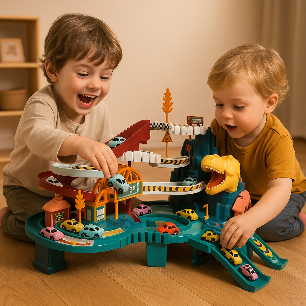 Set off on a remarkable adventure with DinoVenture - a fusion of imagination, creativity, and hands-on excitement, as children tackle exhilarating racing challenges, enhance their fine motor abilities, and dive into limitless escapades with the dynamic race track!