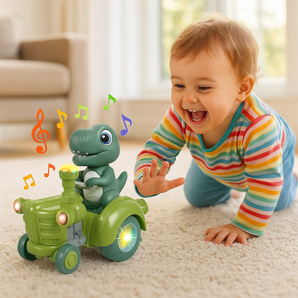 Encourage your child to move, dance, and have fun with DinoZoom, the engaging dinosaur toy that illuminates, plays cheerful tunes, and motivates infants to crawl, strengthen their muscles, and enhance critical motor abilities—all while enjoying endless entertainment!