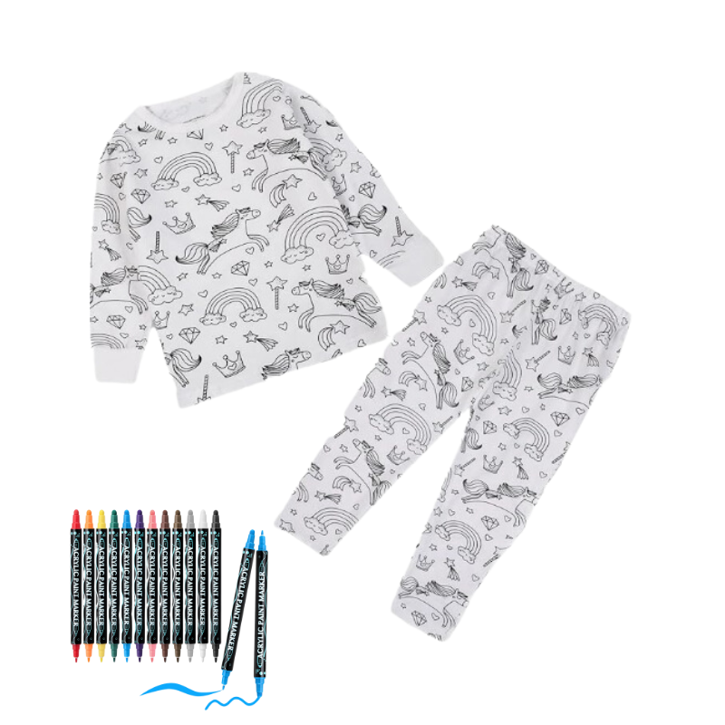 Transform bedtime into an enchanting journey with Dreamify, the do-it-yourself pajama set that empowers children to customize their own distinctive sleepwear. Observe as their creativity flourishes, producing vibrant, one-of-a-kind creations they will love to wear!
