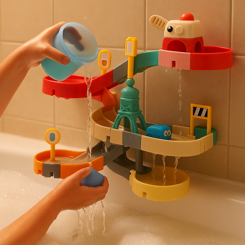 Equipped with Drenzo, your little one will laugh, discover, and navigate as they drive cars through watery curls and bends—turning each bath into a joyful, educational adventure brimming with action, surprises, and sensory experiences.