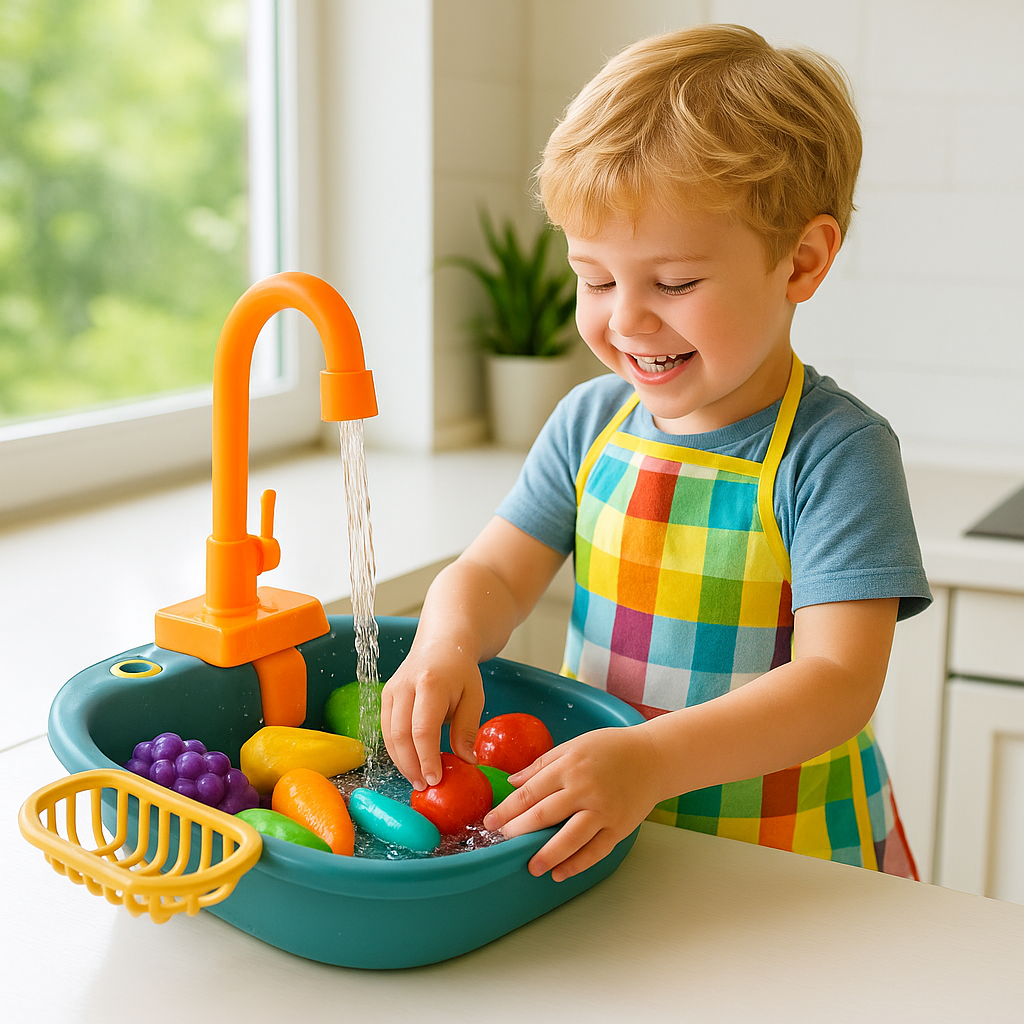 Witness their eyes light up as they turn the faucet, with water swirling in a merry dance – no wastage, just pure fun! It's more than just play; it's a heartwarming sight to see your little ones mimic your moves, mastering life skills with each pretend meal prepared and dish washed.