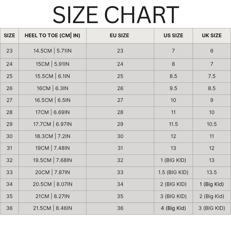 - Available Sizes: 23-36