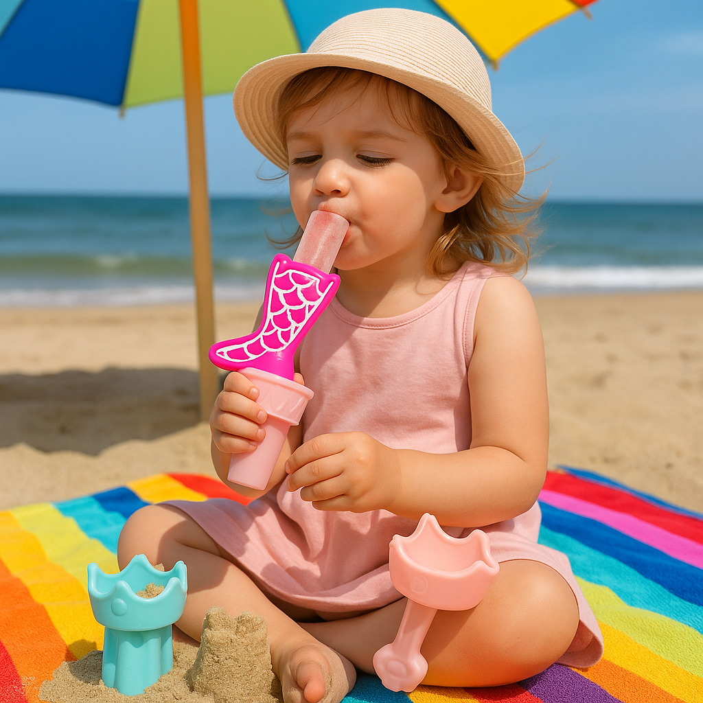 Our Frozzle Magic Set elevates ice cream time with a dual-purpose scooper that lets kids scoop and hold their own dessert, fostering independence and pride. The added mermaid-themed sleeve, to hold frozen treats, transforms snack time into a magical, enchanting adventure, making every bite a special, joy-filled experience.