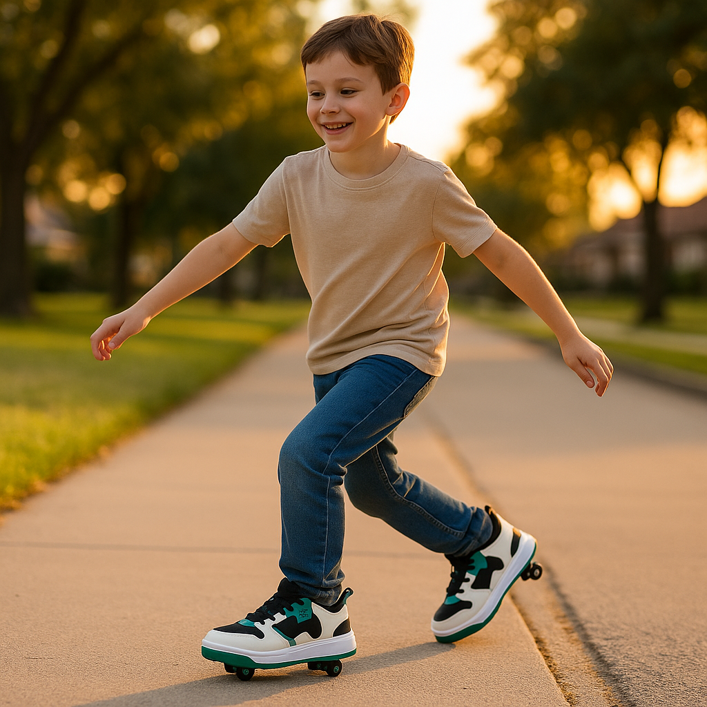Transform ordinary strolls into exciting escapades with Glideon – a dynamic footwear enhancement that allows children to glide, roll, and zoom around with ease while ensuring their feet remain cool, comfortable, and primed for action all day.