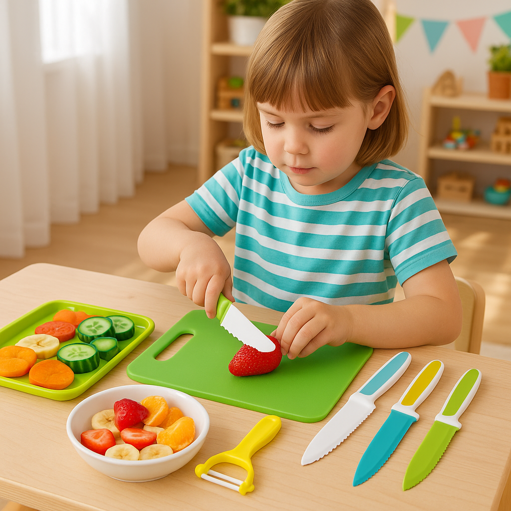 These knives have been a great hit with my grandsons of 4 and 6. They are sharp yet safe, and teach excellent cutting and preparation techniques. They love preparing salads and vegetables for our meals when they come to stay.