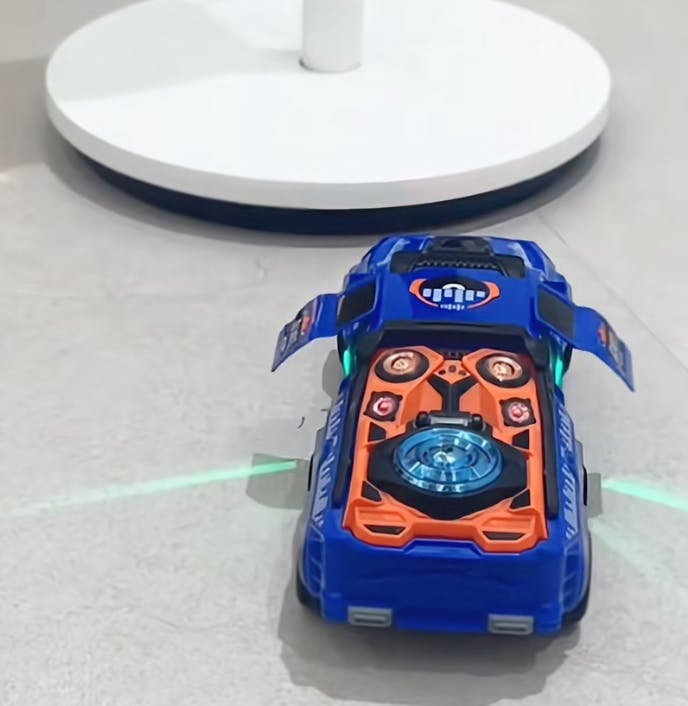 This car is WILD 😂 Lights, music, spinning roof thing—feels like a little party zooming across the floor. My kid dances to it and follows it around, totally worth it.