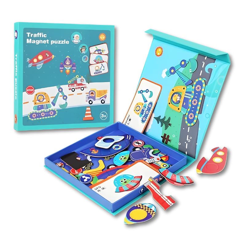 Tidy-up time just got easier. The clever magnetic book-style design keeps all the puzzle pieces in one place, so nothing gets lost. Whether at home, in the car, or outdoors, Magnetia travels anywhere your child’s imagination goes. It’s the perfect companion for learning and fun on the go!