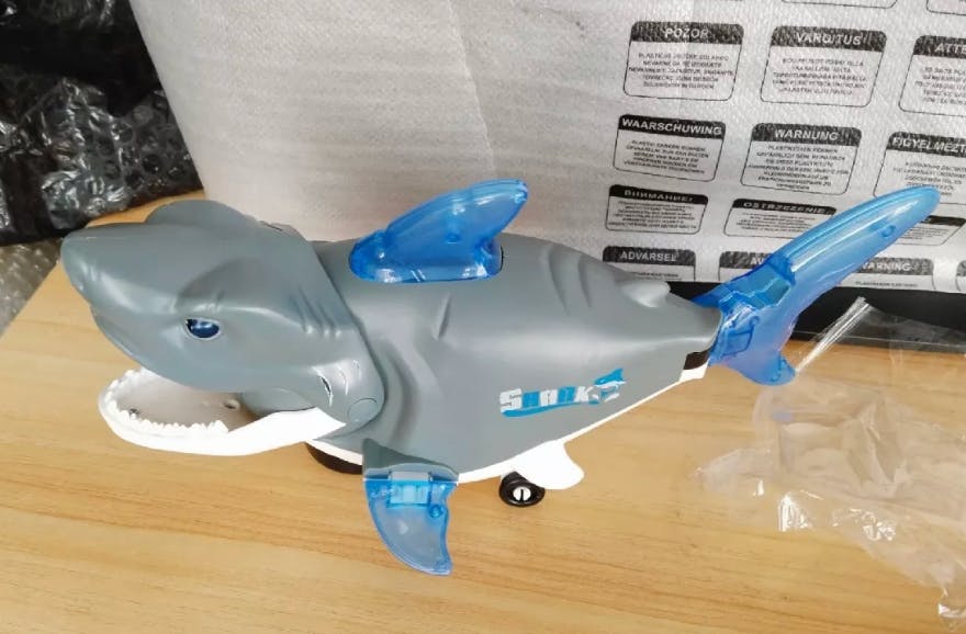 i bought this thinking it’d be a cheap toy but it’s honestly kind of awesome. the flashing lights are super bright and the shark spins and changes direction when it hits stuff. great for keeping kids entertained and confused lol.