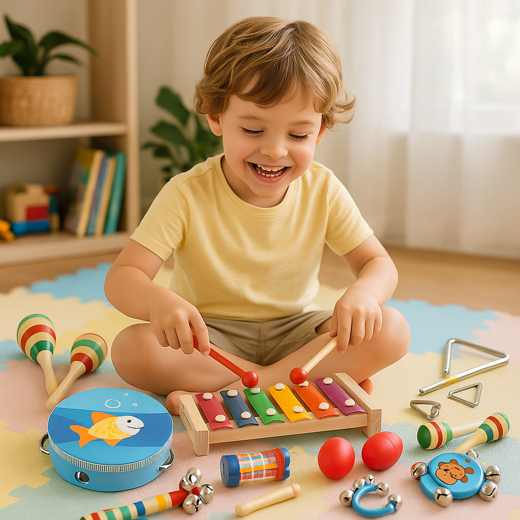 Observe as your child's abilities flourish with each note and rhythm. These vibrant instruments go beyond mere toys—they serve as educational resources. They assist your child in refining fine motor skills, enhancing hand-eye coordination, and developing a rhythmic sense. You'll witness them growing more self-assured and inventive, communicating their feelings through the enchantment of music.