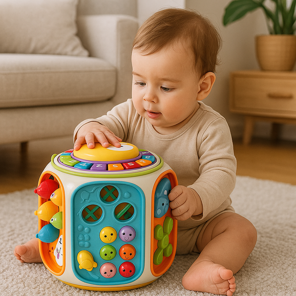 This cube assists infants in improving their coordination, motor abilities, and problem-solving skills without even realizing it. Twisting, pressing, and matching elements enhance concentration and memory while ensuring enjoyable engagement. It’s a fundamental learning tool that evolves alongside your child at every stage.