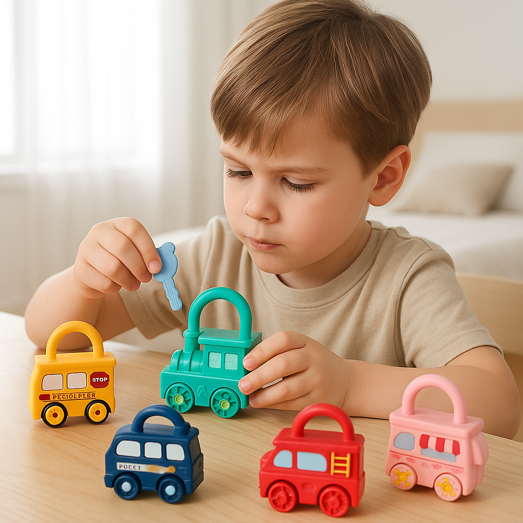 I love activities that are open ended and this one kept my four year old focused and engaged . She loved the key matching and unlocking ,pluse the train carts are able to link together and that was also a hit! Would recommend this for busy hands !
