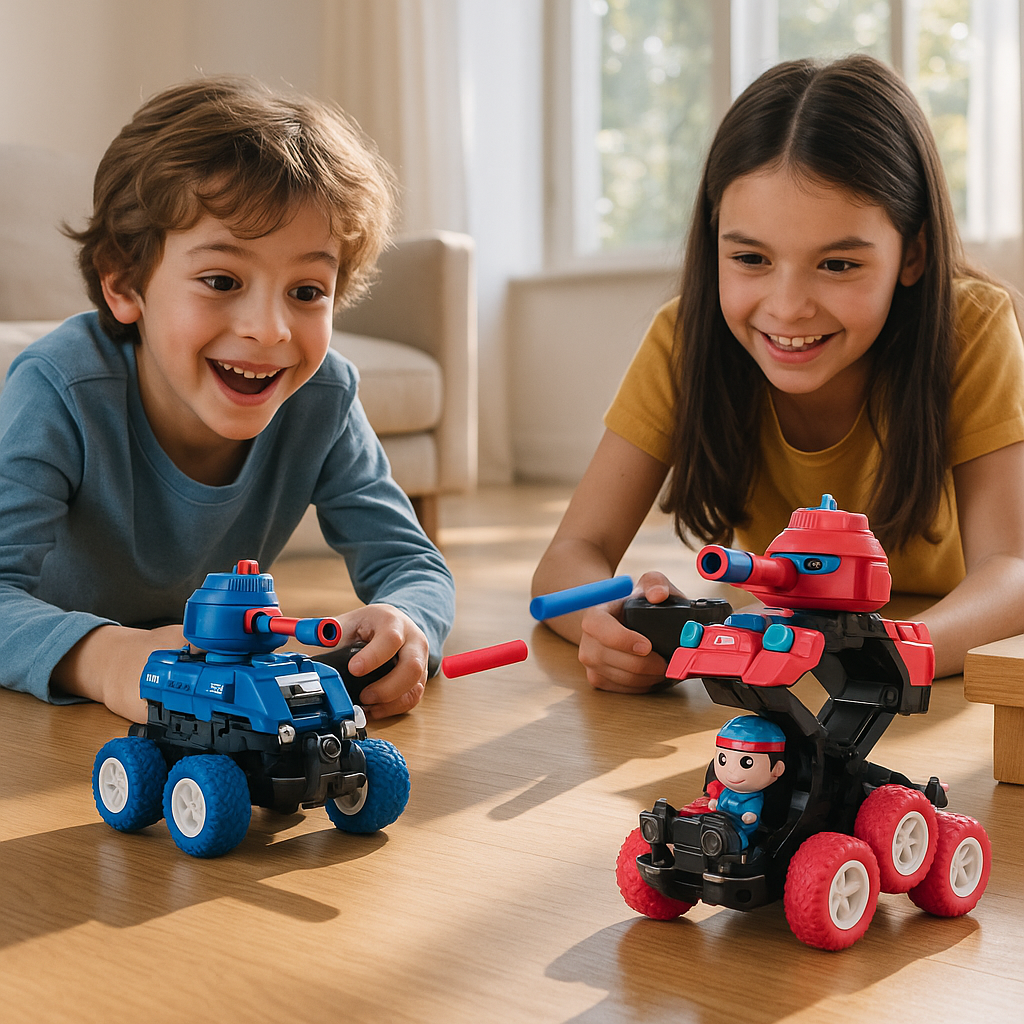 A simple push is all it takes to ignite the adventure. This tank accelerates forward with strong inertia, easily conquering uneven surfaces, and shifts into transformation mode upon impact. Just when you think the action has concluded—bam—it ejects a mini vehicle from its front, introducing another level of surprise.
