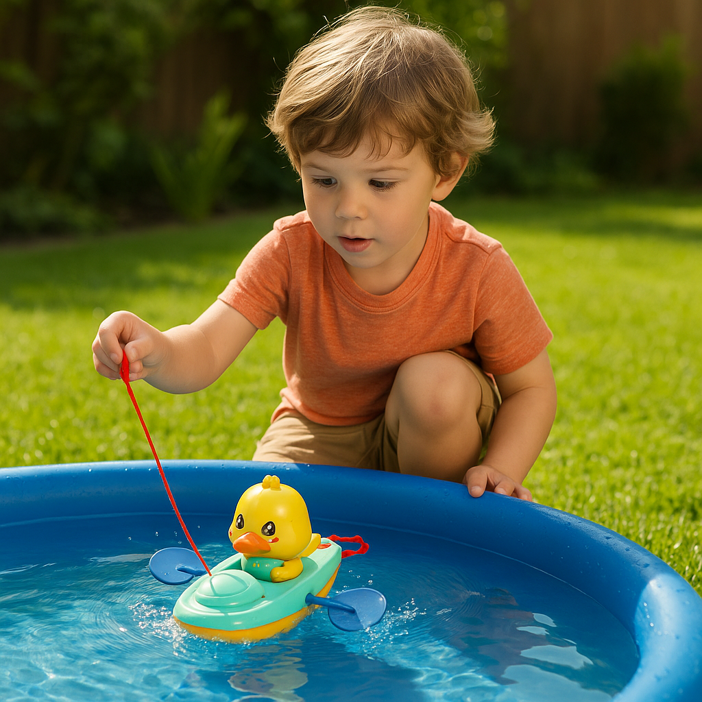 This little duck bath toy is a huge hit in our house! My child loves pulling the string and watching it paddle across the tub. It’s well made, durable, and provides endless fun without needing batteries.