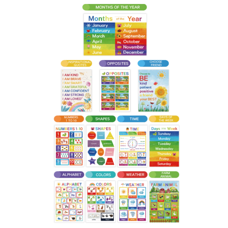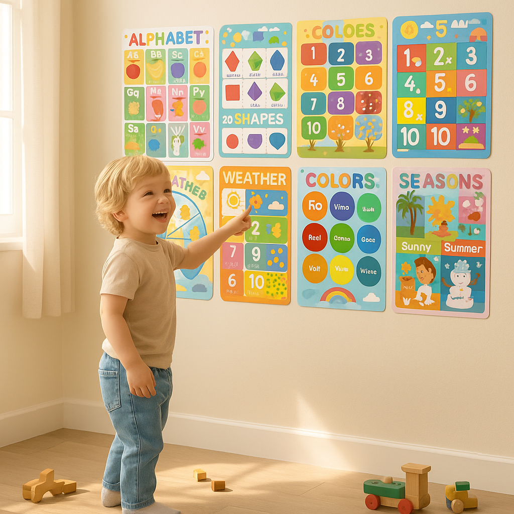 With bright and engaging posters covering essentials like letters, numbers, colors, and more, this set makes it easy for toddlers and preschoolers to build early skills in a fun, interactive way. No need for complex teaching tools; these posters make learning simple and enjoyable, sparking curiosity in young minds right from the start!