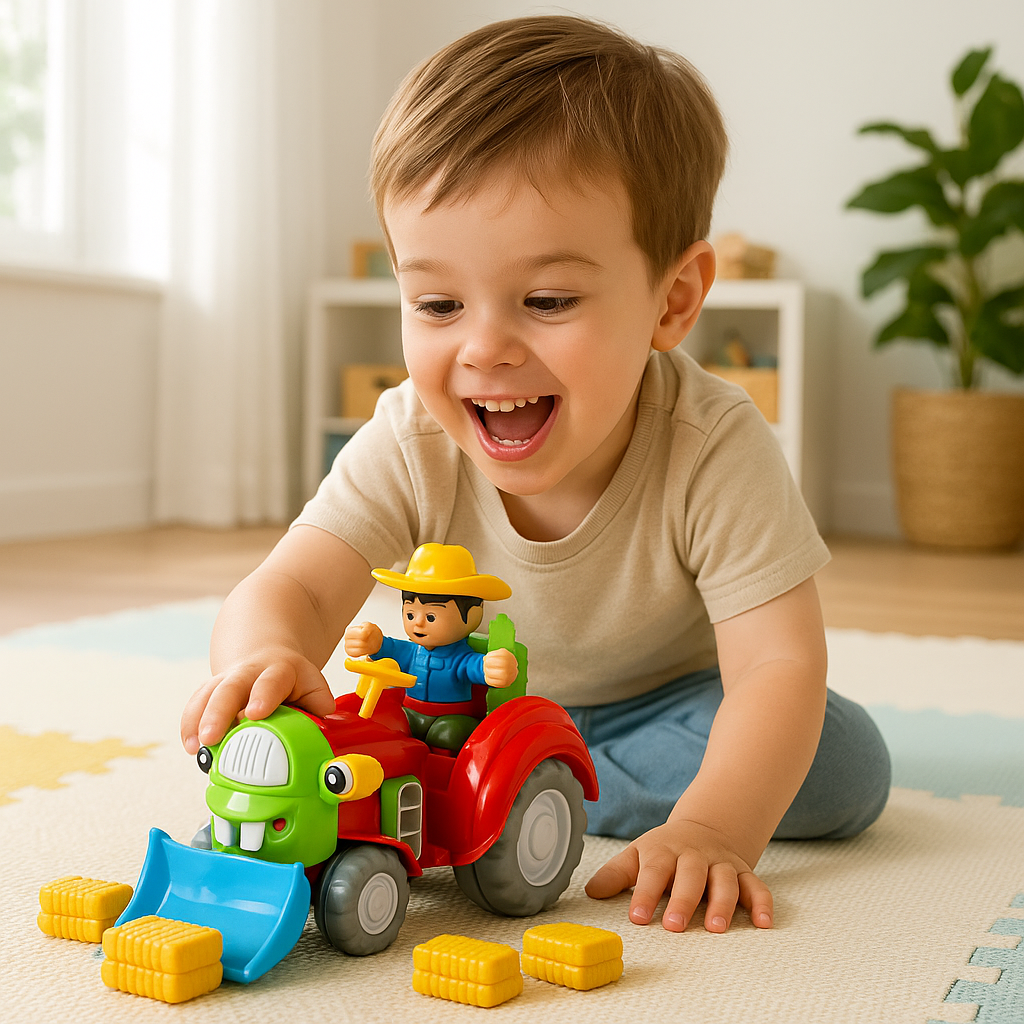Let your child's agricultural creativity flourish as they dive into action with Plowtix, the musical tractor that lights up and transforms playtime into a thrilling farm adventure.
