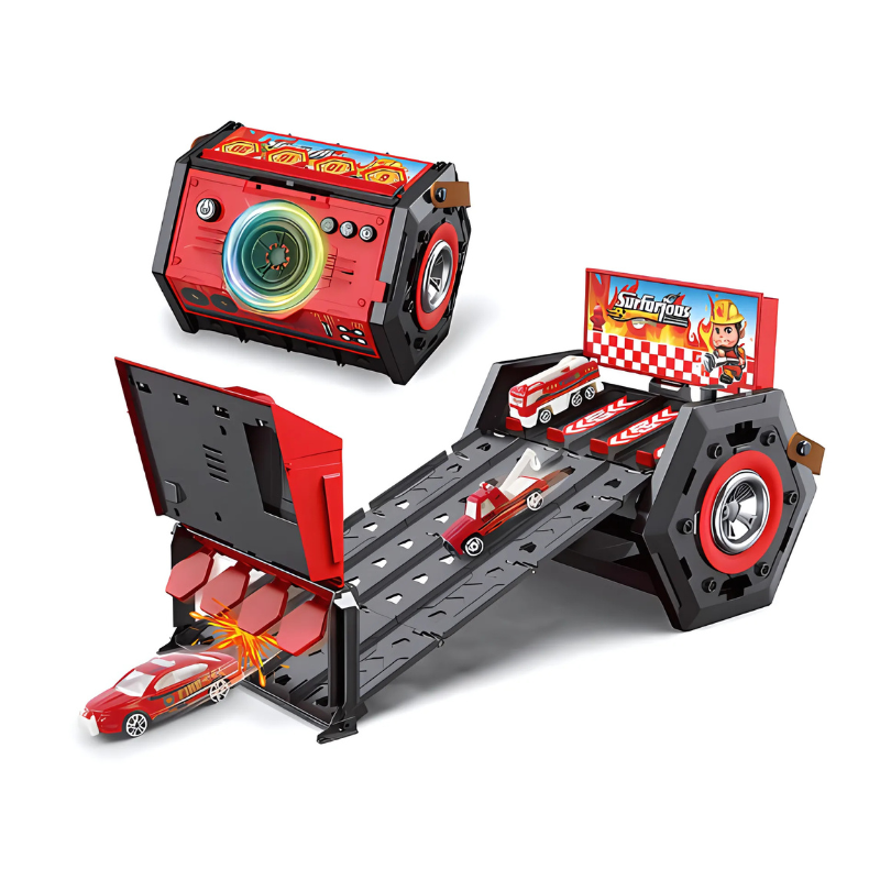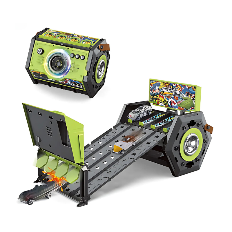 Experience the thrill of authentic racing with Racevo, the premier portable track set featuring lights and music that elevates playtime into a breathtaking experience, encouraging your child to aspire and race towards limitless fun and growth!