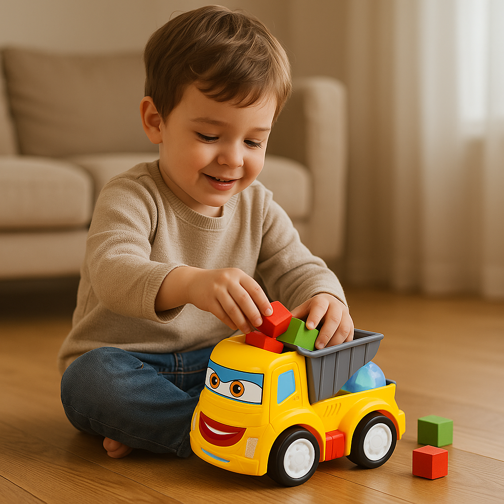 I bought this Dumper Truck toy for my 5yearold son, and it has been a huge hit in our household! The transformation from a truck to a robot is so smooth, and it feels like watching a real robot come to life. The lights are bright and colorful, and the music is cheerful without being too loud or annoying. My son loves to show it off to his friends, and they’re always amazed when it autotransforms. The robot mode is very detailed, and the truck mode is sturdy enough to handle rough play. It’s like having two toys in one, which is fantastic. I was also impressed by the quality, it feels durable and wellmade. Overall, this toy has exceeded my expectations, and I’d highly recommend it for any child who loves vehicles or robots.