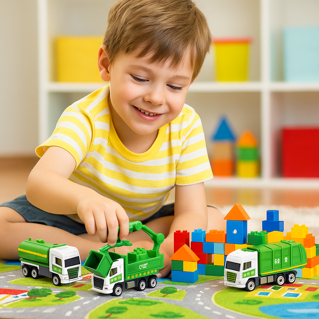 This is such a great toy for little kids! My 2 year old is fascinated by garbage trucks, so I got this for him, and he carries it everywhere. The pull back feature is easy for small hands to use, and the truck rolls a long way on different surfaces. It’s lightweight yet very durable, and the colors are vibrant. I also love that it encourages imaginative play, my son pretends to collect "trash" with it all the time. A perfect gift for any child who loves vehicles!