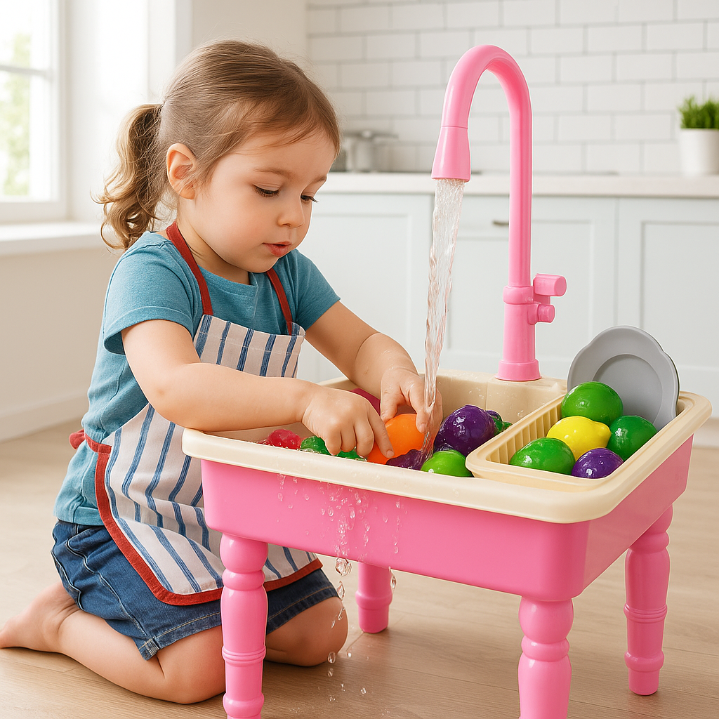 With Sinkle, young ones can grasp essential kitchen skills in a fun-filled manner. They'll master washing dishes, rinsing produce, and even understanding kitchen safety. All this happens with an innovative automatic water recycling feature that ensures the enjoyment continues without wasting resources. It's playful learning at its finest!