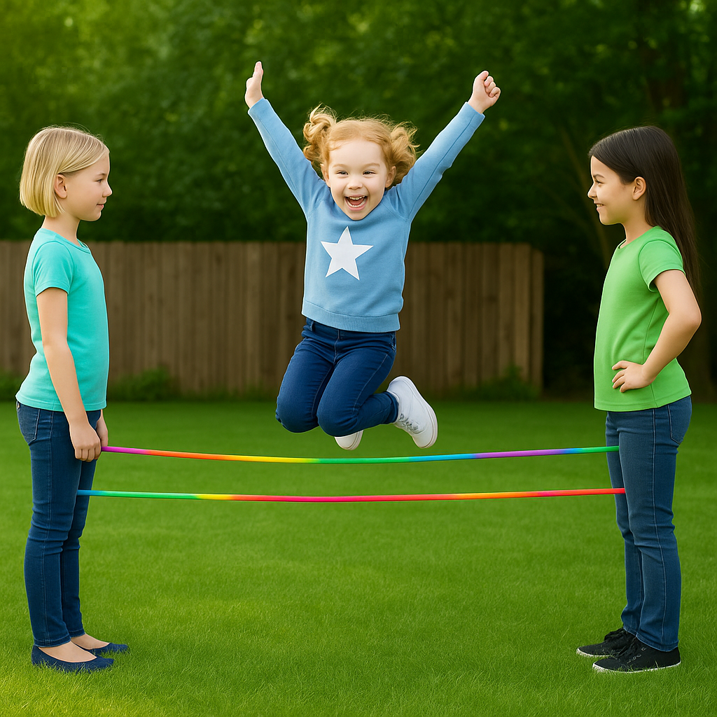 This is such a simple but fun outdoor toy! The elastic is soft enough to not hurt, but strong enough to stay in place during jumping. I love that it encourages active play and creativity.