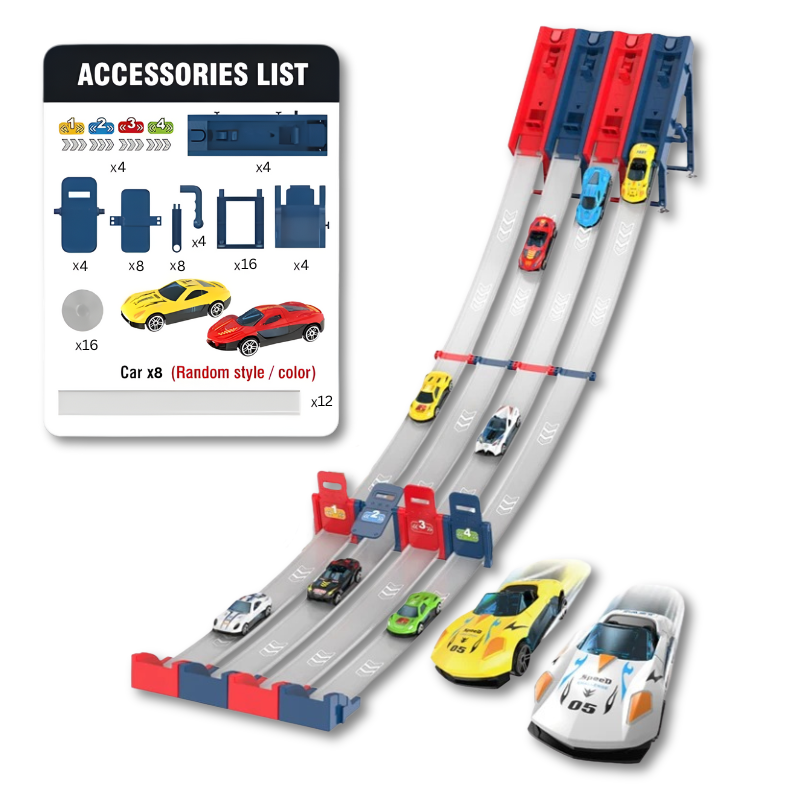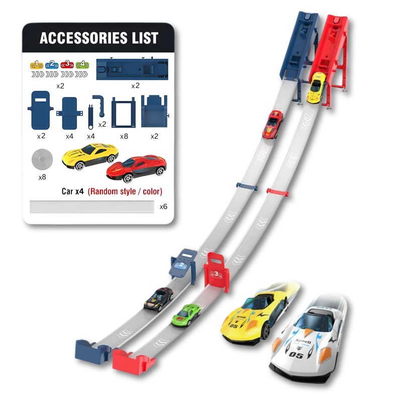 Feel the rush of racing like never before with Snaplyn, the thrilling ejection race track designed to unite families for exhilarating downhill experiences or speedy flat-surface contests, featuring strong suction grip and durable alloy cars for unending fun and excitement!