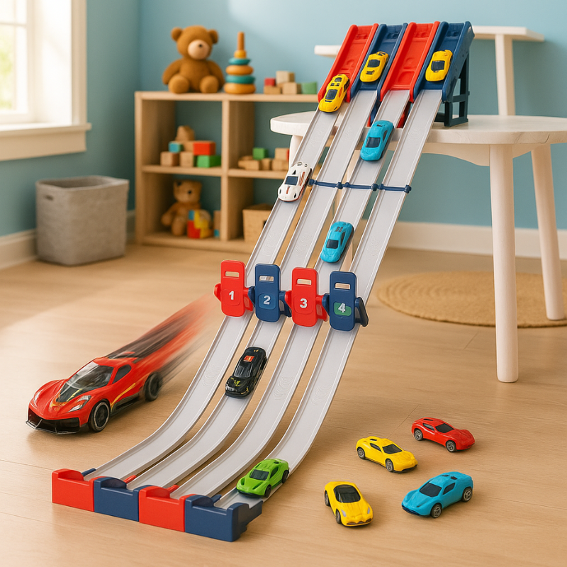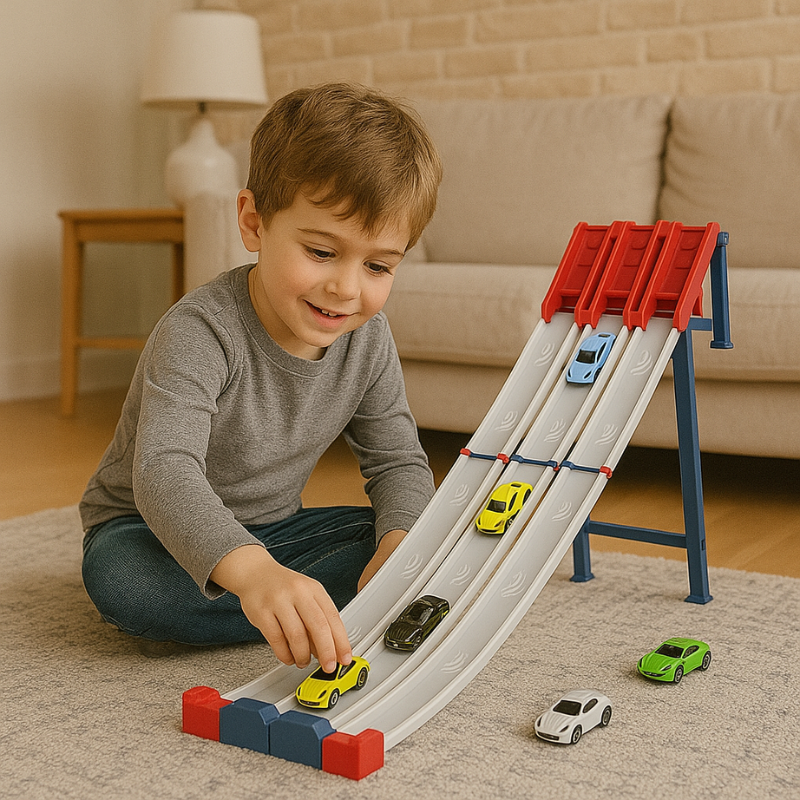 No more sliding tracks or wobbly starts. The sturdy suction cups keep the track locked in place, even during the wildest races. Parents can easily help kids get it ready in minutes. Once it’s set up, the action takes off and doesn’t stop.