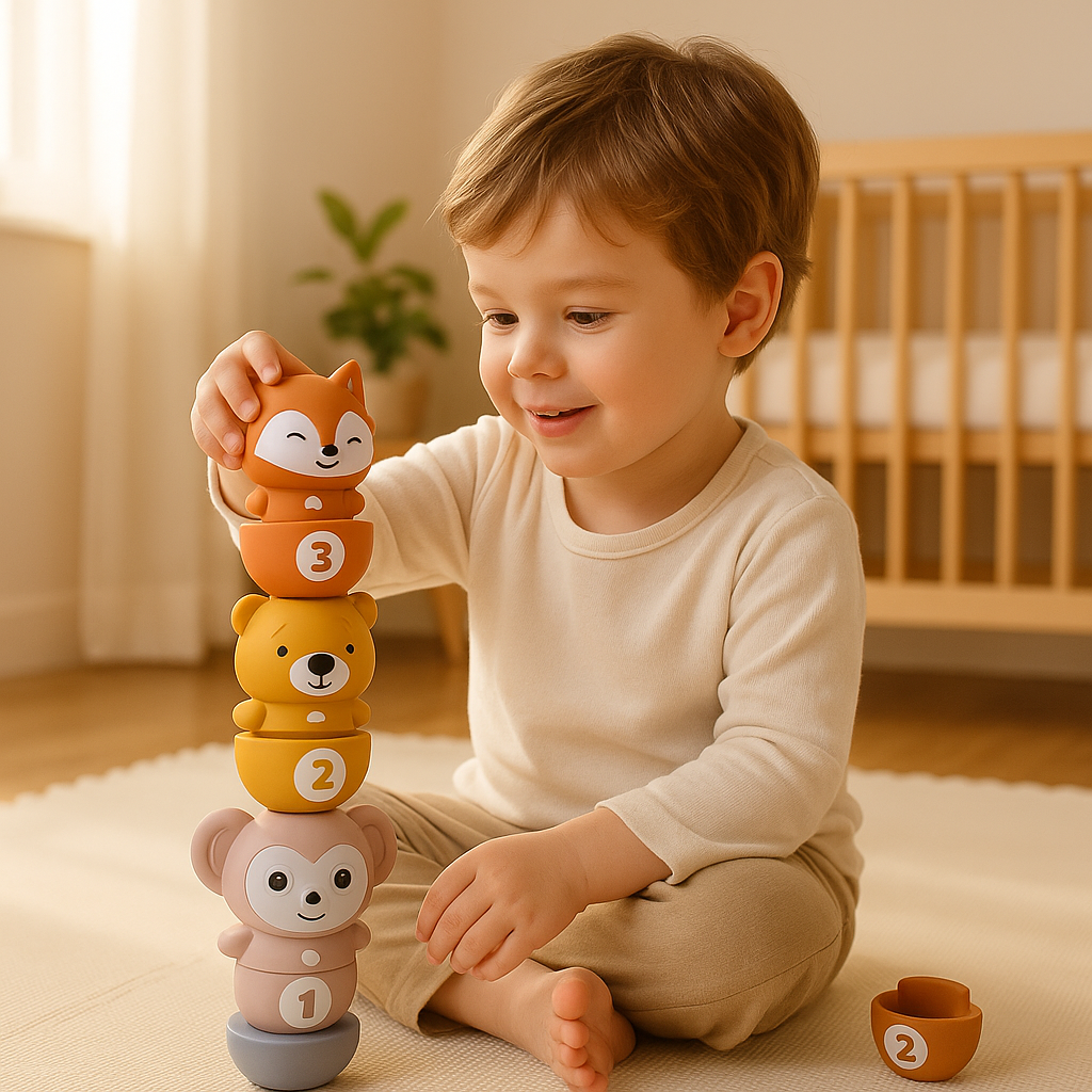 Give your toddler hours of fun-filled, educational play with Stacko, where every squeeze, stack, and Tumble ignites their creativity, sharpens motor skills, and helps them explore a world of discovery while you enjoy the peace of knowing they're learning through joyful play.