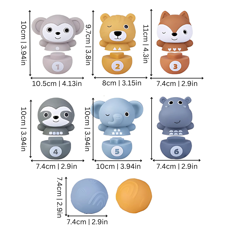Playtime should always be a blast, and with Stacko, it's also a learning experience. The cute animal patterns and Paddlefy colors on each piece captivate your little one's attention, sparking joy with every pin they topple over. It’s more than just bowling; it’s an engaging way to help your child grow. Squeeze the toys to hear a delightful squeak that’s sure to get giggles!
