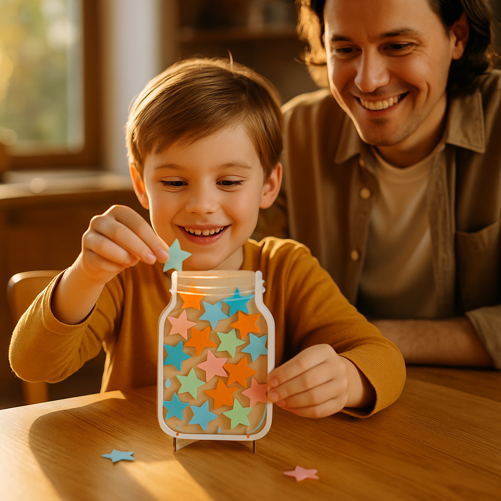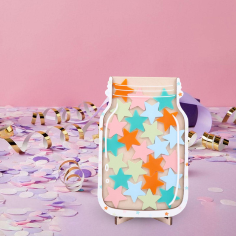 Create a sanctuary of affection and support with the Starloft Collectible Reward Jar, where each shining star represents a significant achievement in your child's journey toward becoming their best self, turning daily triumphs and acts of kindness into valuable, memorable moments between parent and child.