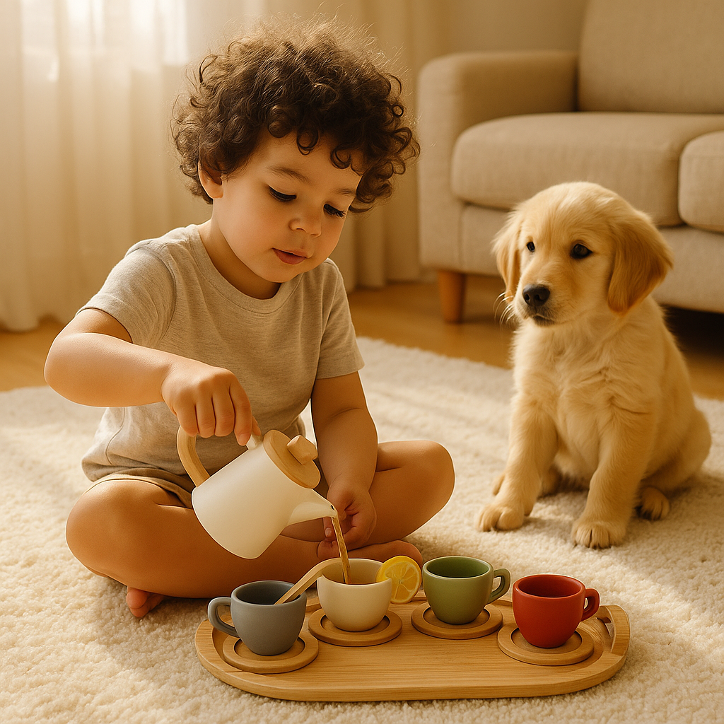 I love Montessori inspired toys, and this tea set is a wonderful addition to our playroom! It encourages creativity and social interaction, and the materials are both durable and safe for kids. My toddler enjoys "pouring" tea and serving it to all her dolls, making this an excellent toy for imaginative play!