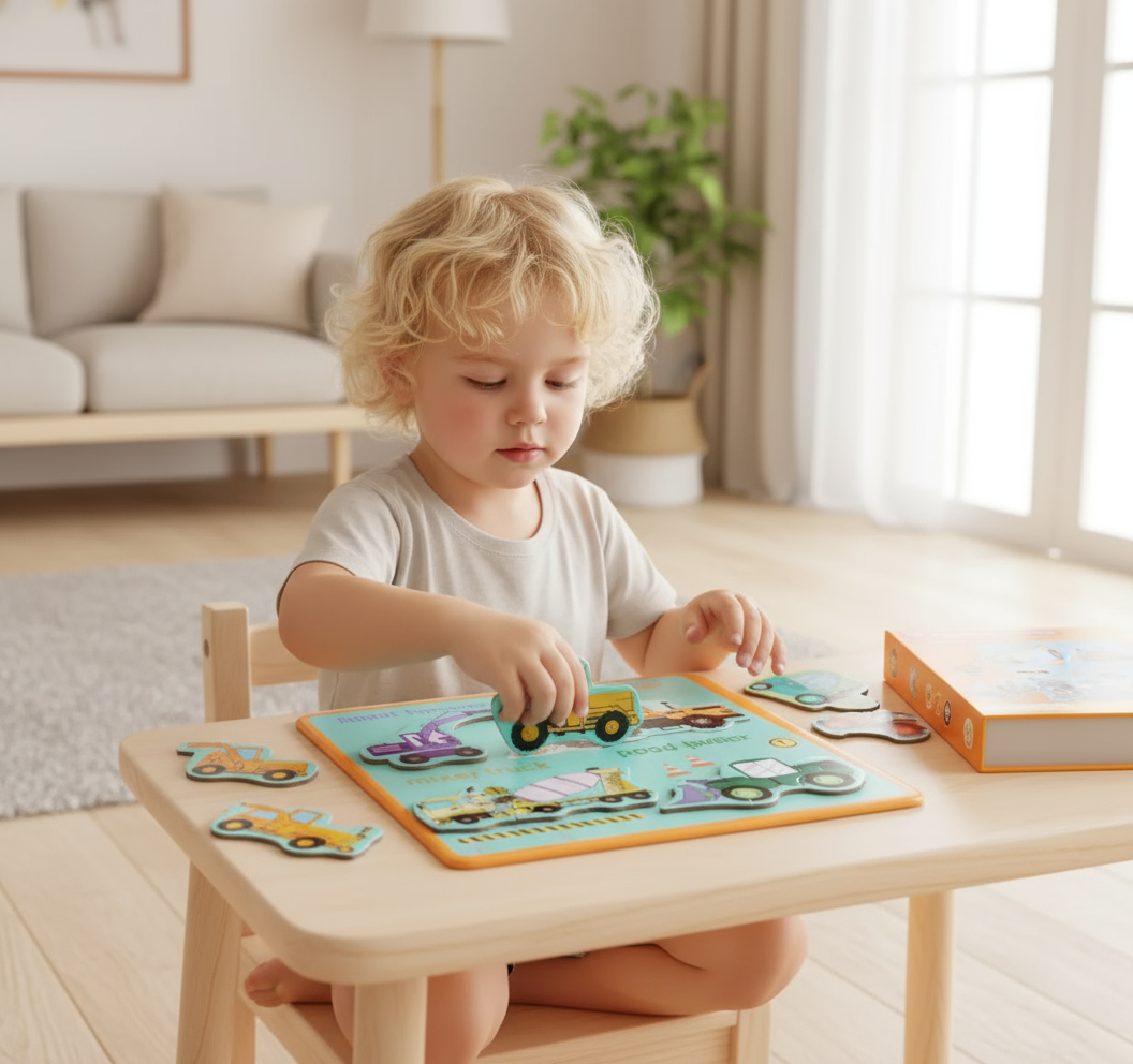 Introduce your toddler to the joy of learning with Tinkloa Puzzle Books, a magnetic experience inspired by Montessori that engages small hands, stimulates developing minds, and captivates curious spirits, whether during peaceful moments at home or exciting adventures on the move.