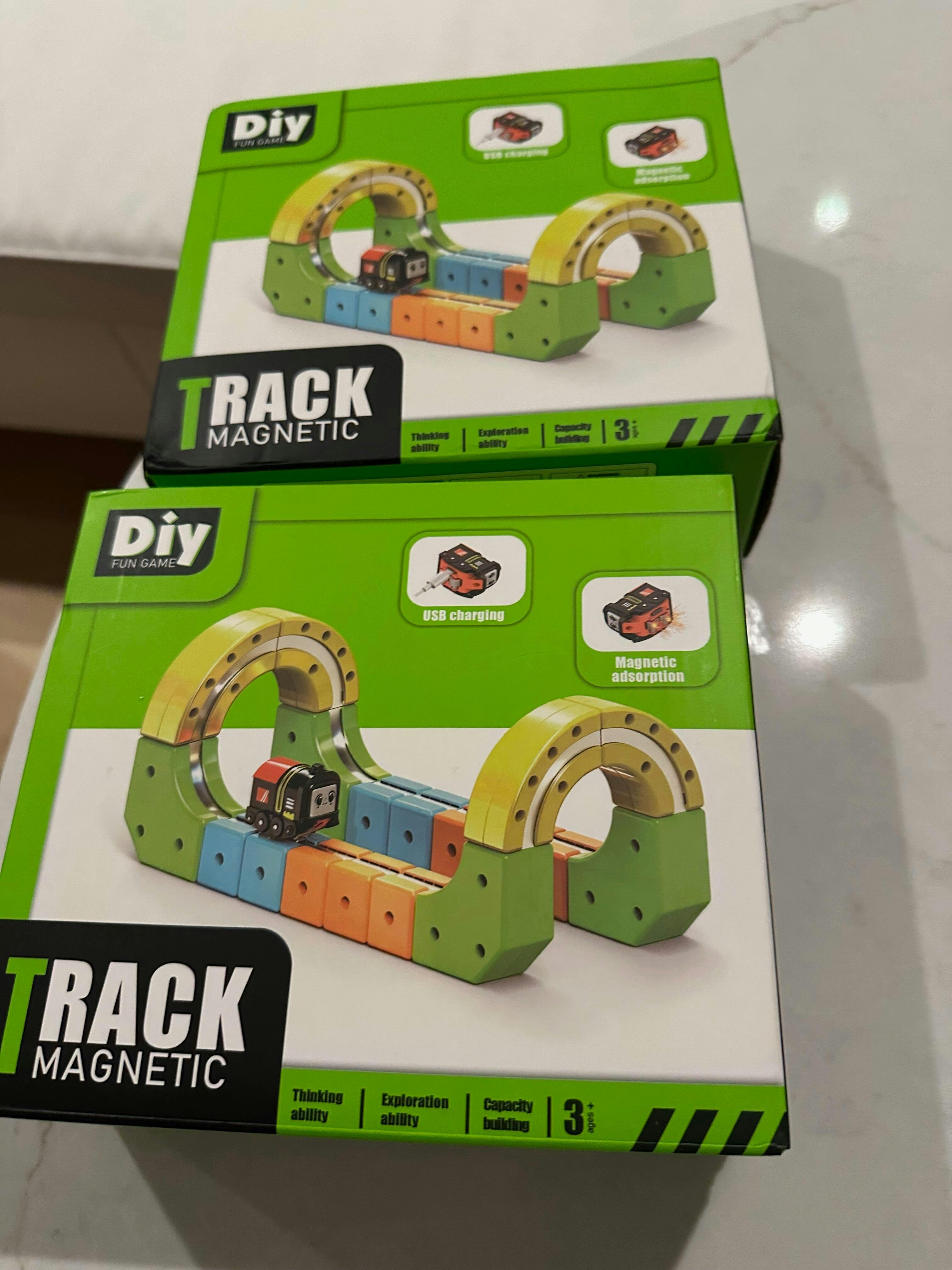 this cube train track is such a clever and creative toy! My son figured out how to connect the pieces quickly and absolutely loves watching the train zip through the loops. It's a great mix of learning and fun.