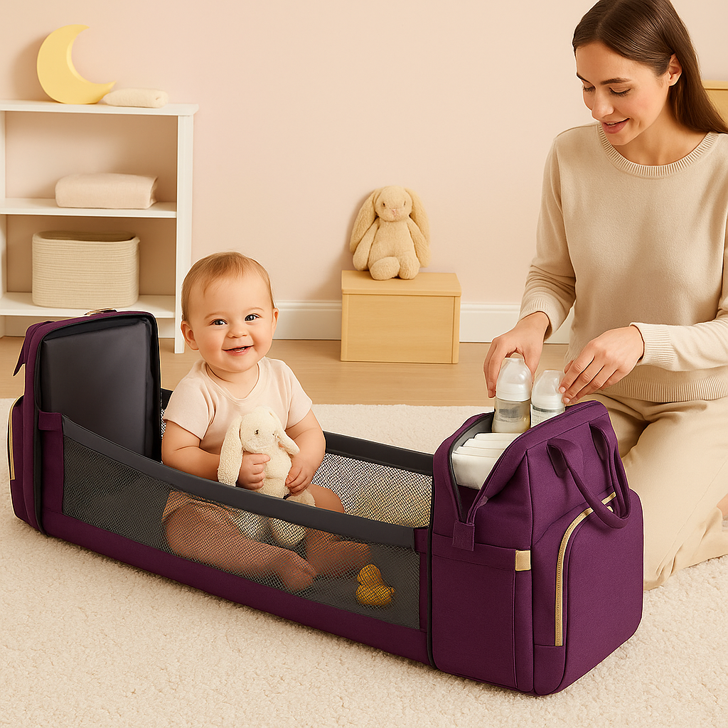 Need storage for bottles, diapers, toys, or wipes? No problem. There’s a designated spot for everything, featuring insulated sections to maintain the optimal temperature for bottles. The foldable bed sets up quickly and provides your baby with a neat, comfortable space to rest or get changed—even in the middle of nowhere. It's all focused on simplifying your day.