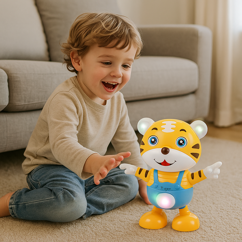 Ignite playtime magic with Twinkloi—a delightful friend that brings joy, laughter, and music to every occasion. Observe how your child's expression brightens as this charming tiger wiggles, sings, and performs to lively melodies, transforming ordinary days into exciting escapades filled with sound, color, and perpetual laughter.