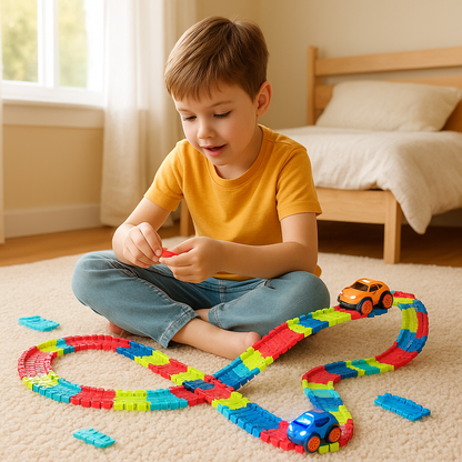 Experience the excitement of continuous racing with Velocirun, the premier high-speed race track designed for children, which not only offers endless entertainment but also inspires imagination as they create their own winding circuits!